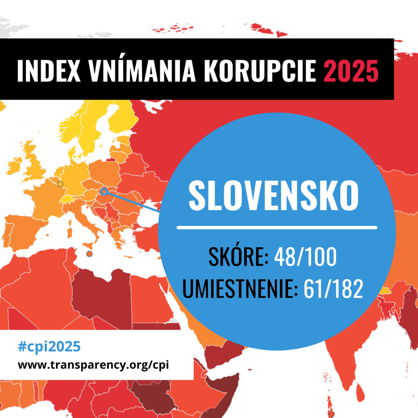 Slovensko sa v najcitovanejšom rebríčku vnímania korupcie prepadlo o ďalšie dve pozície na 61. miesto spomedzi 182 krajín. Od nástupu súčasnej vládnej moci tak stratilo už 14 pozícií a 6 bodov.